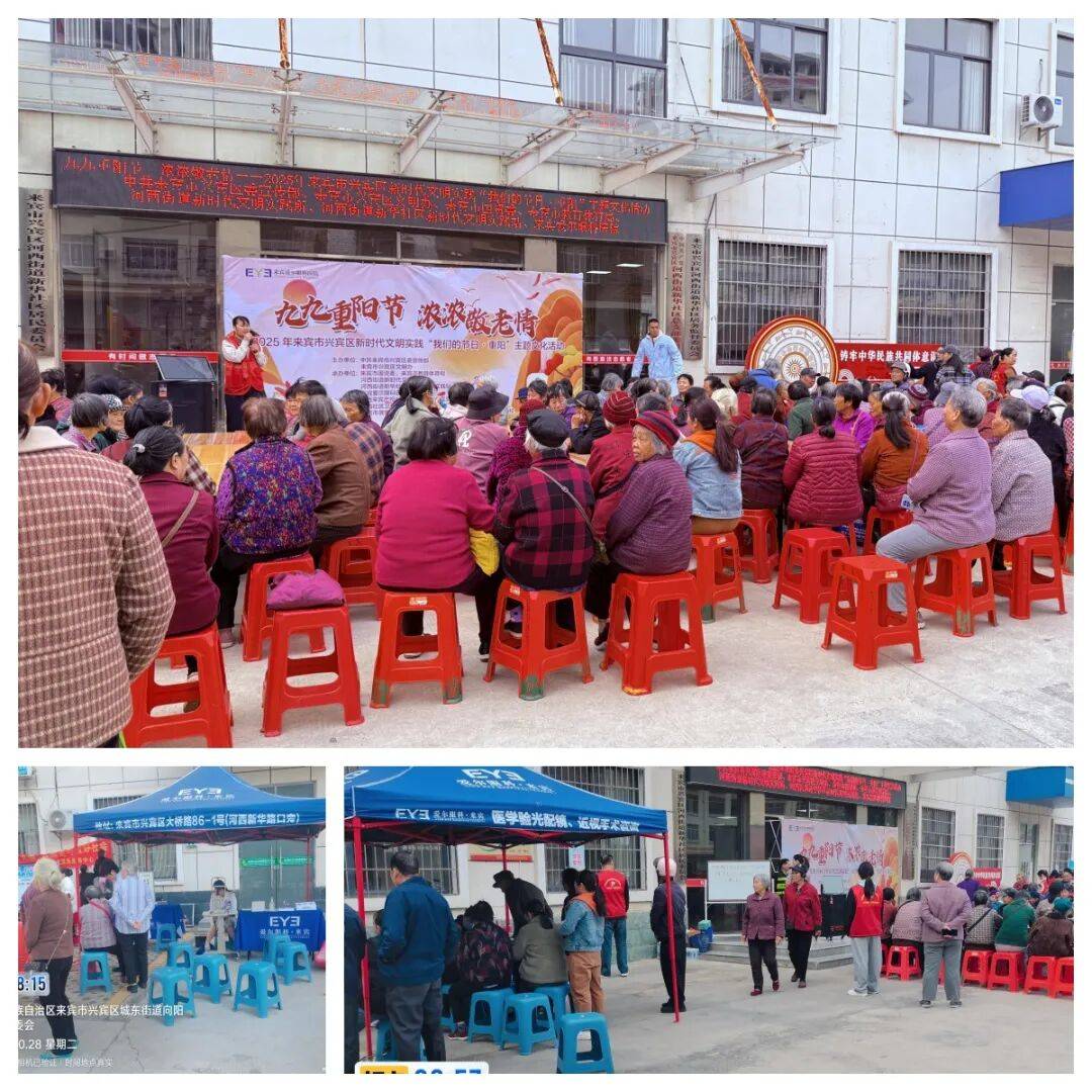 金秋送爽,丹桂飘香,又是一年重阳至。在这个尊老、敬老、爱老的传统节日里,为关爱中老年朋友的眼健康状况,提升居民的爱眼护眼意识,重阳节期间,来宾爱尔眼科医院联动多个街道社区,开展了多场“九九重阳·老人同乐”主题活动。用专业的医疗服务守护长辈们的“清晰视界”,让这个重阳因“眼”而暖,因爱而浓。