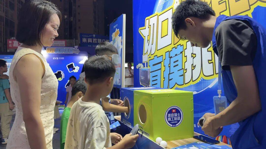 蒙上眼睛,全靠手感分辨手术切口大小!这个游戏前排起了长队,大家跃跃欲试。