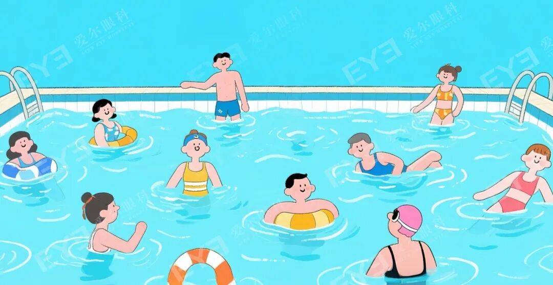 泳池里,别揉眼睛!若感觉眼睛不适,立即上岸用清水冲洗,滴1-2滴人工泪液 “应急”。