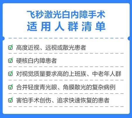 ② 升级术式:飞秒激光辅助白内障手术。用飞秒激光完成切口制作、晶状体撕囊等关键步骤,精准度达微米级,创伤更小、并发症更少,术后视觉质量更优。